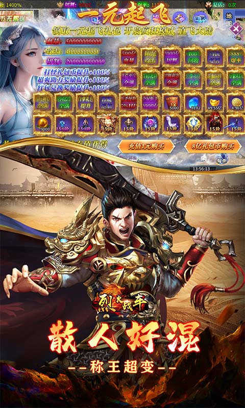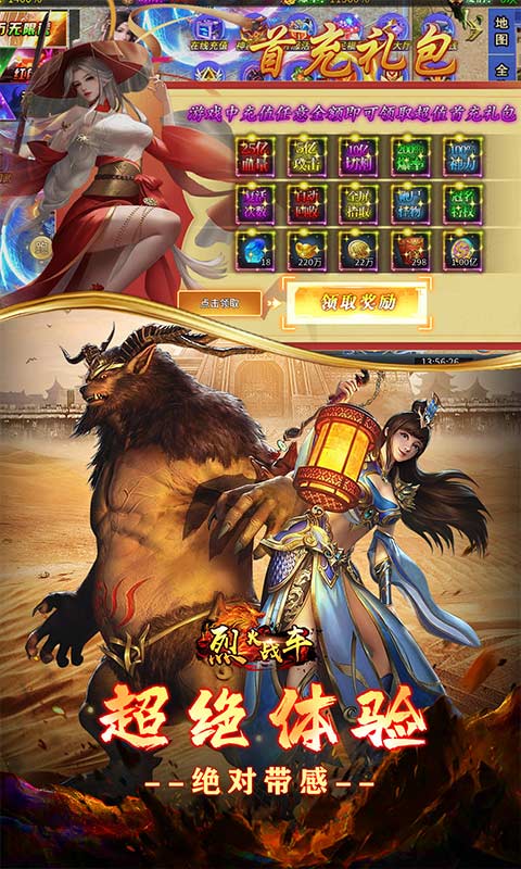 2、送千倍爆率、首充大礼、炫酷时装、海量货币!